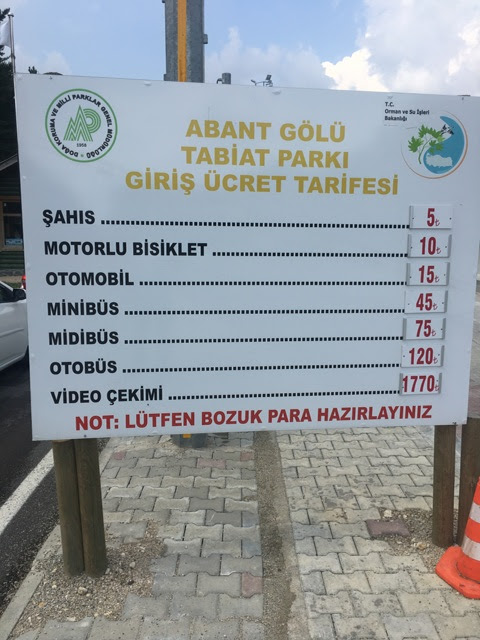 Göl alanına giriş ücret tarifesi (2018 yılı)