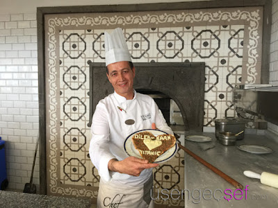 Şef Emrah Karacula'yı ve ekibini tebrik ettiğim bir özel nokta da şu oldu: O gün 23 Nisan akşamı olduğu için, günün anlam ve önemine uygun olarak kendisi, ekstra özen gösterip tertemiz Ay-yıldızlı önlüğünü giymiş, bununla da yetinmeyip, kurutulmuş Kavun dilimine "Ay" şekli verip, Yıldız meyvesiyle de yanına yıldızını hazırlayıp, şanlı Bayrağımıza gönderme yapan enfes bir tatlı hazırlamıştı. Ellerine kollarına sağlık! :)