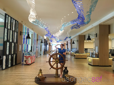 Kahvaltıdan sonra, hazır bu kadar yaklaşmışken, beğenirsek, bir dahaki tatilimiz için değerlendirmek üzere hızlıca bir göz atalım diye, Titanic oteller zincirinin Antalya'da Belgöz Nehri kenarında devasa bir alana kurulan, en yeni yatırımı Titanic Hotel Belek'e de uğradık.