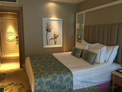 Sezon itibariyle henüz yerli turistlerden ziyade, yabancı misafirlerin ve ufak toplantı gruplarının doldurduğu otele, sabah normal check-in zamanından, erken gelmiş olmamıza rağmen, yorgunluktan leyla gibi olduğumu gören ön büro personeli, hemen ilgili davranıp bize kendi odamız hazır olana kadar, ellerinde o an içim müsait olan odalardan bir tanesini ayarlayıp, geçici bir odada dinlenme fırsatı sağladılar. Otelin standart odalarının da gerçekten ferah ve konforlu olduğunu, bu sayede bizzat rahat yataklarında mislerrrr gibi bir uyku çekerek deneyimlemiş oldum.