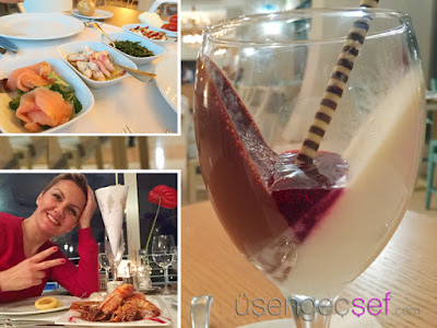 İkinci akşamda, mezeler ve ana yemekleriyle daha deniz mahsulü ağırlıklı bir menü hakimdi. Somon pastırması, söğüş ahtapotu, deniz börülcesi, jumbo karidesleri derken, hem yemeklerin lezzeti, hem sunum şekilleri, hem de servis elemanlarının güler yüzlü ve kaliteli hizmeti bizi her iki seferde de pek mutlu etti, onu bilir, onu söylerim:)