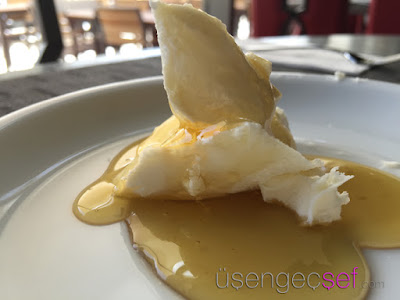 Eşimin, bu bal-kaymak ile, şeklinden dolayı "buz dağının görünen kısmı" diye Titanic gemisinin hikayesine gönderme yaptığını zannetim başta... Ama aslında, böyle deli gibi yemeğe devam edersek, dönüşte diyetin-miyetin hak getireceğiymiş vermek istediği esas mesaj:)