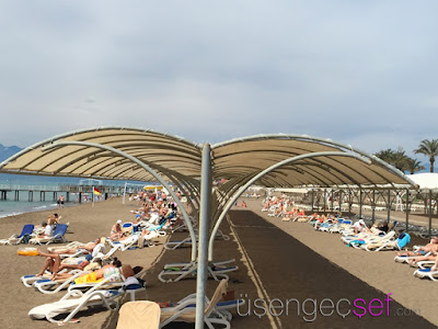 "A Takımı" dizisindeki, çikolata renkli abimiz "Mister T" gibi valla ne zaman uçtuk, nasıl geldik Antalya'ya anlamadım bile. İşin komiği, buz gibi soğuk ve yağmurlu bir İstanbul sabahını ardımızda bırakırken, boğazlı kazaklarla ve montlarla yola çıktığımız için, Antalya'ya iner inmez, pırıl pırıl parıldayan güneşi görünce, Kuzey kutbundan yeni intikal etmiş turist misali şaşakaldık! Transferimiz esnasında ilk iş olarak üstümüzdeki kışlıkları, bavulların ön gözüne tıktık bi'güzel:) Aaa o ne öyle kat kat lahana gibi:)
