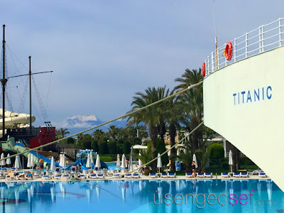 Lara Titanik, Titanik otellerinin gemi şeklinde yapılan tek örneği. İstanbul, Almanya, Belek de dahil olmak üzere bir çok Titanik oteli var. Oteldeki rahat şezlongda sıcacık bir havada uzanırken, arkada üstü bembeyaz karlarla kaplı Toros Dağları'nı görmek, dünyada kolay kolay eşi ve benzerine rastlanmayacak kadar nefes kesici. Şu manzaraya bir bakar mısınız ama?:)