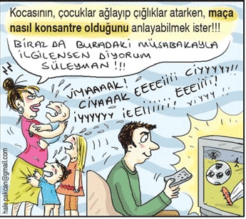 Peki ne bulur? Evliliğin ilk yıllarında kocasının dünya yansa umurumda değil izlerim ulan ben bu maçı, istersem eşekler gibi bağırırım moduna nasıl girdiğini anlayamaz, çıldırır! Ne yapsa da değiştiremez bu durumu. Televizyonun kumandasıyla karısından daha fazla ilgilenen bu adam için maç anlarında bir top kadar değeri olmadığının farkına varır zamanla. Kabullenir. İstemese de göz ucuyla izler, yorum yapmaz, kavga çıkartmaz, rahatsız etmez. Çünkü erkeğin maç izlemesi saygı duyulması gereken bir ritüeldir. Ama kadın ne zaman bir diziye takılsa eşi laf sokacak, diziye ya da karakterlere b..k atacak bir nokta bulur. Çünkü kadının dizi izlemesi zaman kaybıdır. Zamanla kumanda hakimiyetini kaybeder, izlediği diziden de bir b...k anlayamaz hale gelir. Kadın ne ister?