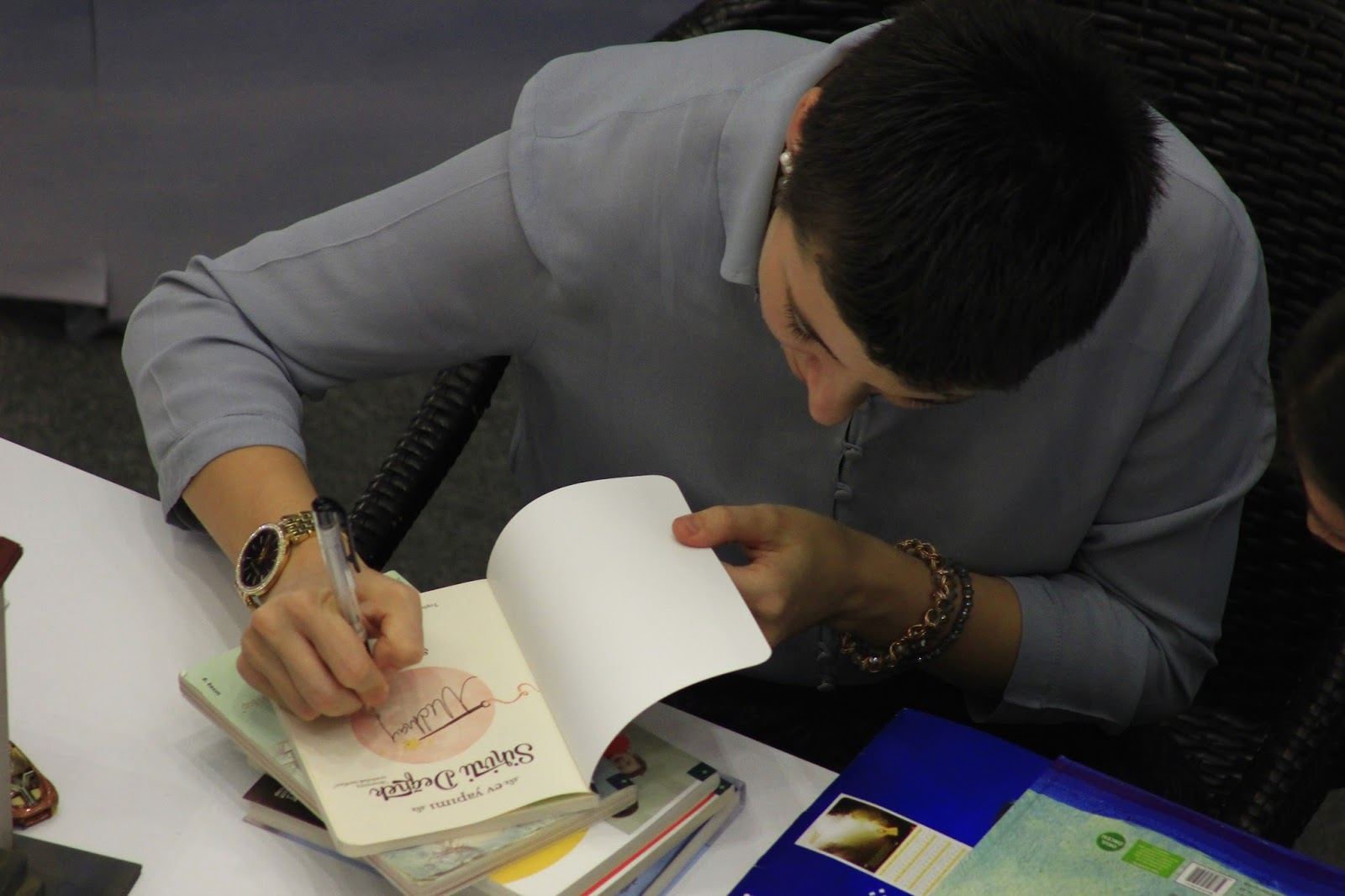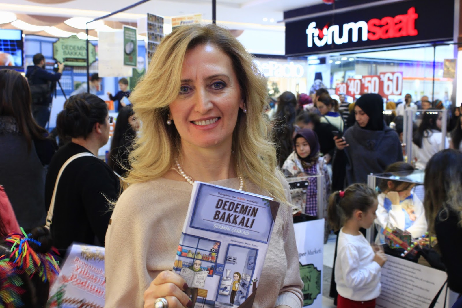 Anne ve çocukların yoğun ilgisi ile karşılaşan Şermin Çarkacı üç saat için planlanan imza gününü hayranlarının ilgisi nedeniyle uzattı.