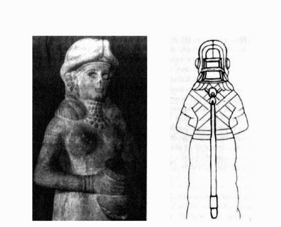 Bu yedi nesnenin yapısını ve öneminin ne olduğunu şu ana dek kimse açıklayamamış olmasına karşın, cevabın uzun süredir elimizin altında olduğuna inanıyoruz. 1903'ten 1914'e kadar Asur başkenti Asur'u kazan Walter Andrae ve meslektaşları İştar Tapınağında, tanrıçayı göğsüne ve sırtına yerleştirilmiş çeşitli "tertibatla gösteren yıpranmış bir heykelini buldular. 1934'te Mari'de kazı yapan arkeologlar, toprağa gömülü benzer ama sağlam bir heykele rastladılar. Bu, güzel bir kadının gerçek boyutlu bir suretiydi. Sıra dışı başlığı, onun bir tanrıça olduğunu gösterecek biçimde bir çift boynuzla süslenmişti. 4.000 yıllık heykelin çevresinde duran arkeologlar, onun canlı gibi görünüşü karşısında büyülenmişlerdi (bir fotoğrafta, heykel ve canlılar arasında ayırım yapmakta zorlanılabilir). Onu Vazolu Tanrıça diye adlandırdılar zira elinde silindirik bir nesne tutmaktaydı.