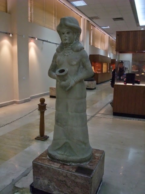 Düz oymalar ve bas rölyeflere benzemeyen biçimde, tanrıçanın bu insan boyunda, üç boyutlu sunumu giyim kuşamı hakkında ilginç özellikleri ortaya koymaktadır.