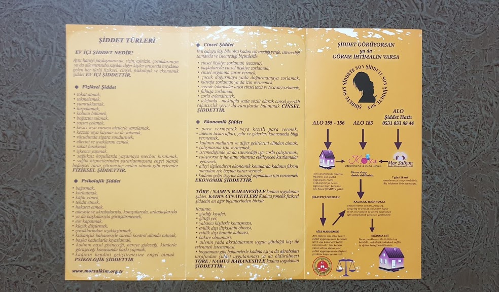 Şiddete maruz kaldığınızda Polis 155'i, Jandarma 156'yı, Sosyal Destek Hattı 183'ü, Aile İçi Şiddet Acil Yardım Hattı 0 212 656 96 96 ve 0 549 656 96 96'yı, ŞÖNİM 0 224 223 03 68'i, ALO Şiddet Hattı 0 531 033 88 44'ü arayabilirsiniz.